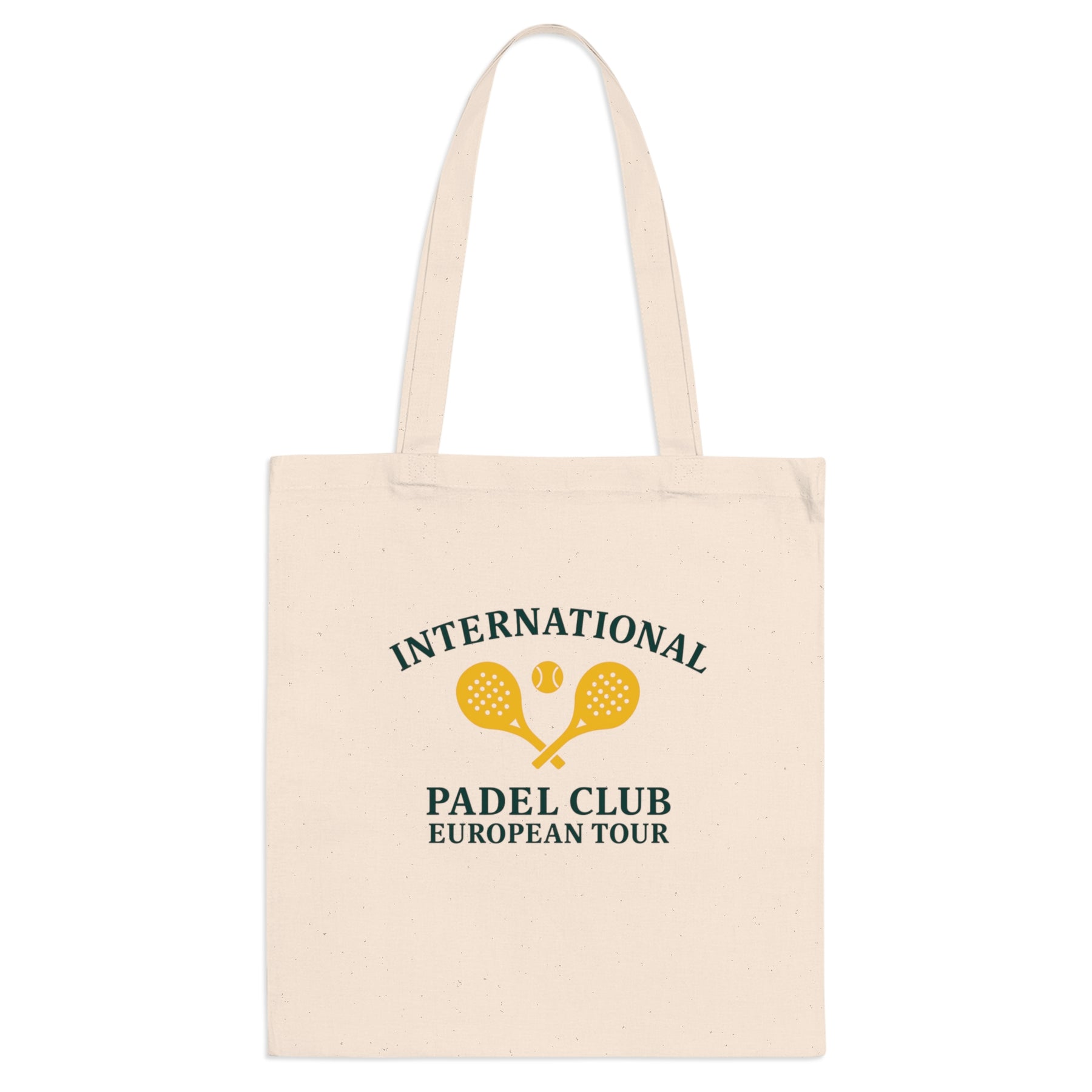 Show your love for padel with our 100% cotton heritage tote bag. Crafted in a natural, unbleached finish, this premium tote from our Heritage Collection features the timeless International Padel Club – European Tour design on the front. Minimal, stylish, and durable, it’s perfect for carrying your gear, groceries, or daily essentials — all while repping your favourite sport with understated class.