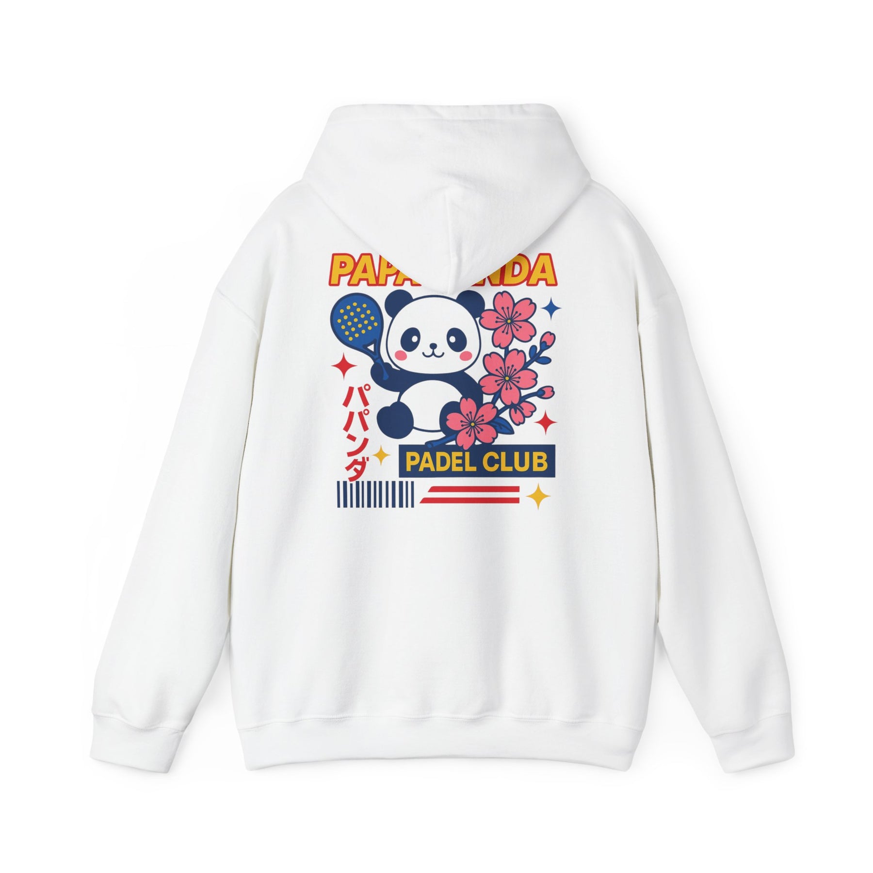 This Winter Whites Hoodie is inspired by the rise of padel in Japan, blending minimal design with bold impact. A muted blue logo sits on the front, while the back features a striking print with cherry blossom and our iconic Papa Panda. Premium, versatile, and made for life on and off the court.